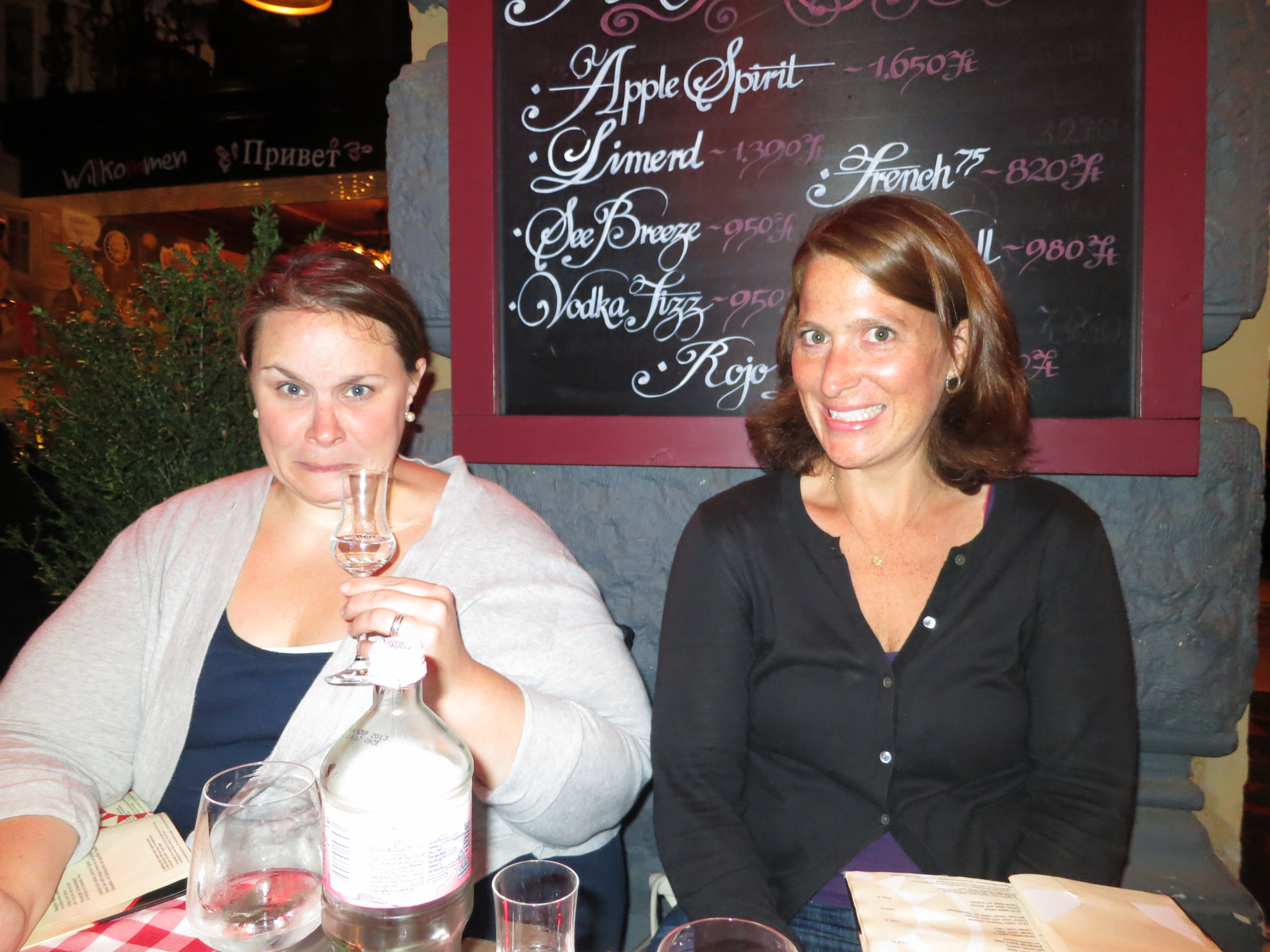 Gina tries the local fruit brandy, palinka. It was worse than the rakia from Bulgaria and could probably fuel a 747 airplane.